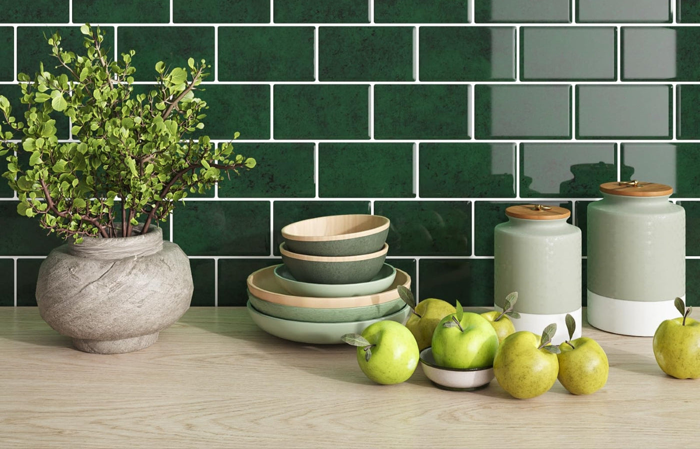 Zelfklevende Tegelstickers 22,9 × 29 CM – Emerald Green Visgraat